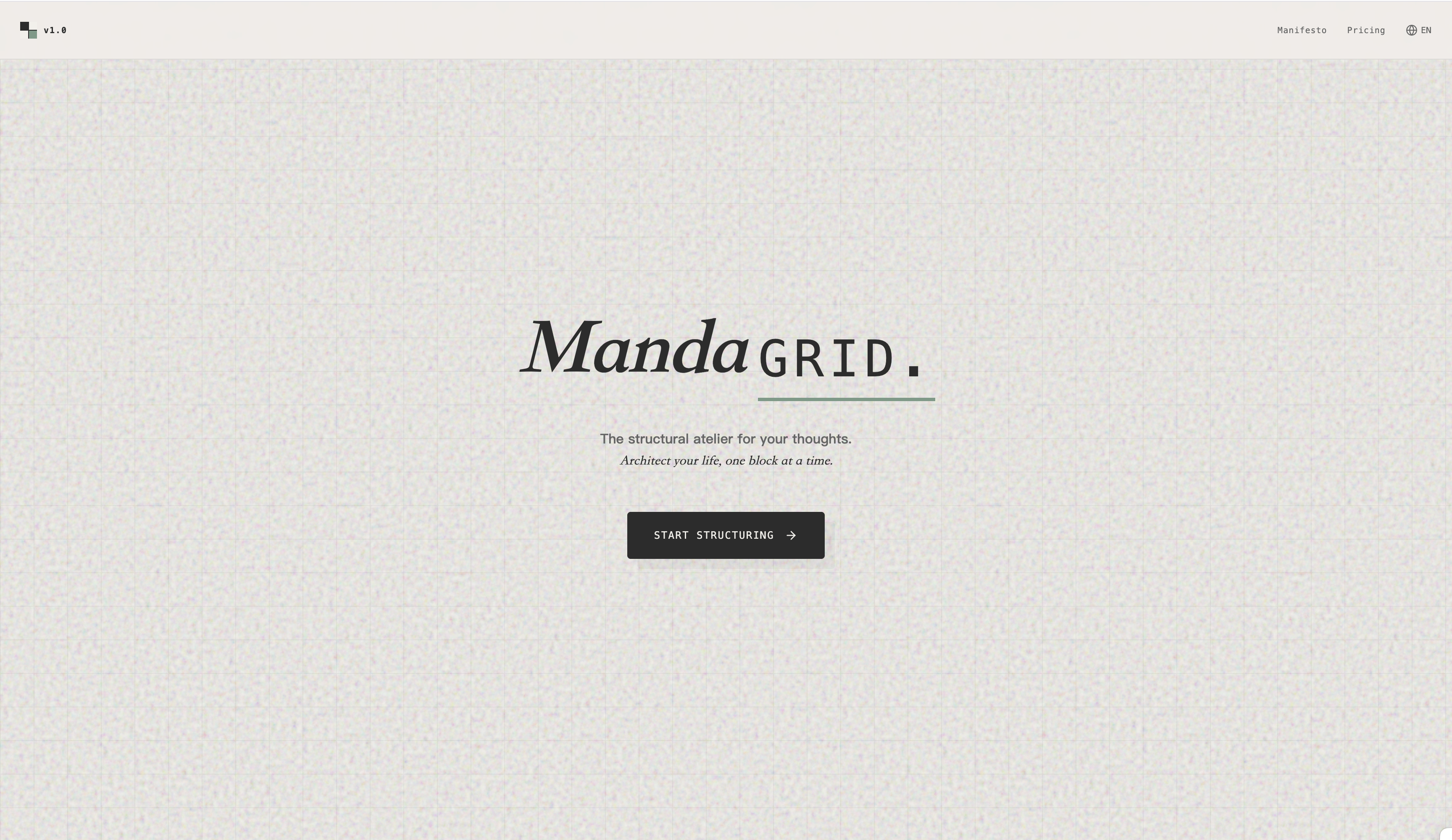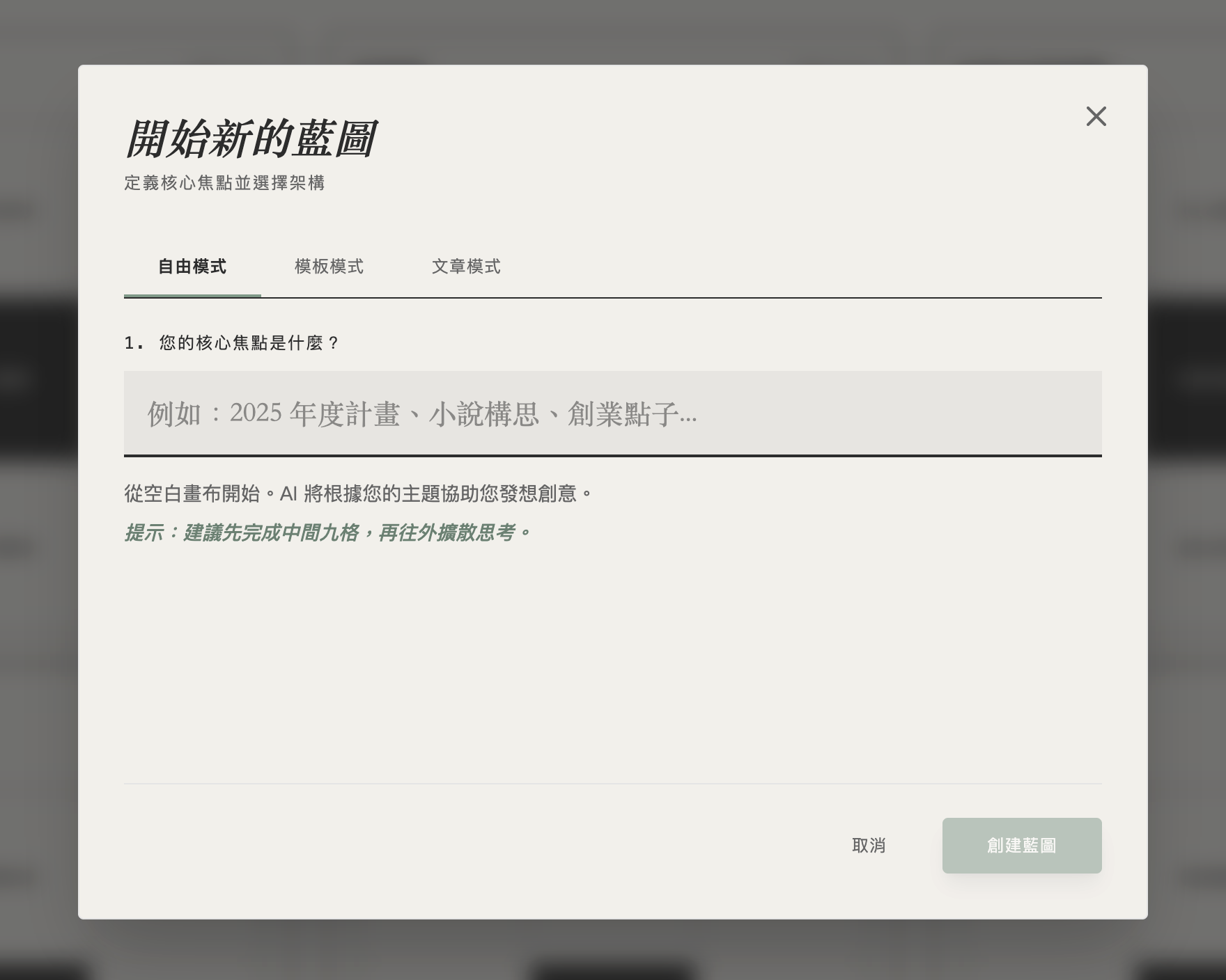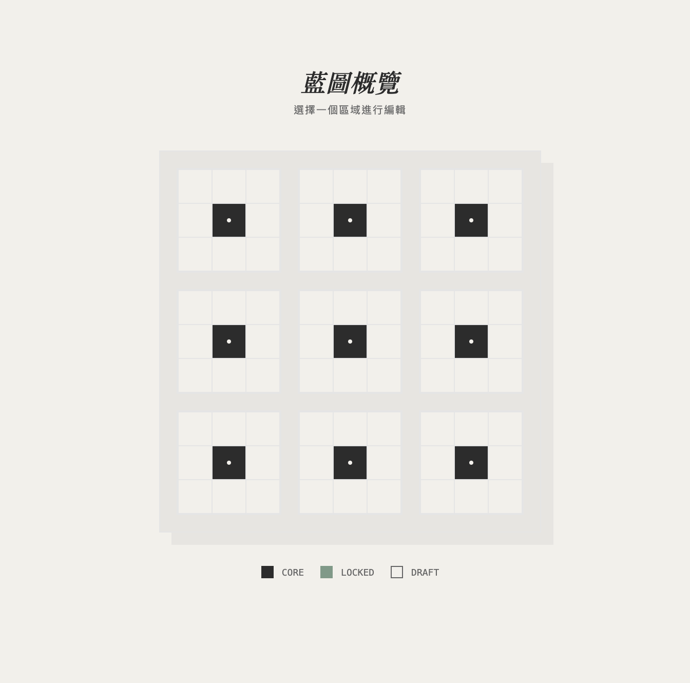 用 9x9 曼陀羅格子把核心目標放中心、展開關鍵任務,靈感/目標/步驟一目了然;可放大專注或縮小全覽,AI 協助填點子與展開細節;簡潔如建築圖紙的風格,適合年計畫、專案規劃、創意發想或學習筆記,只要打開瀏覽器就能把散落想法變成有結構、可執行的行動藍圖。